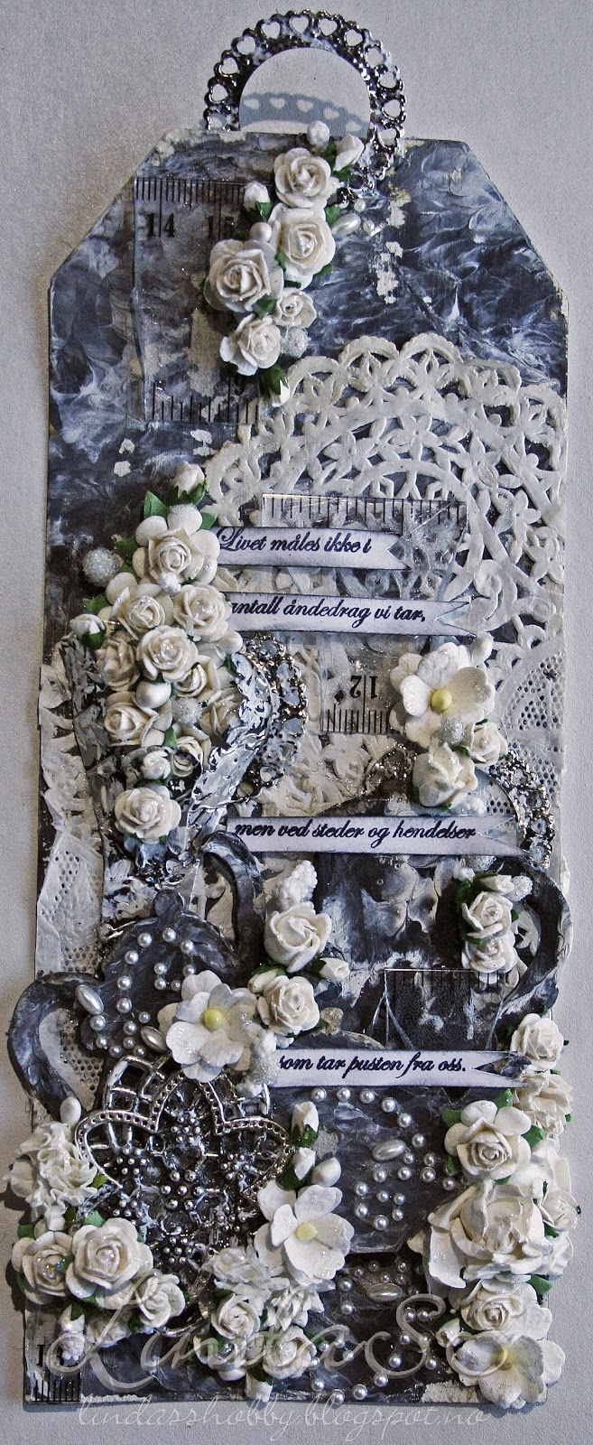 The stamp is a from Vilda stamp and the metal charms is from Korthobby. The border punch is from Martha Stewart.
