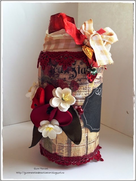 Jeg har valgt å dekorere et syltetøyglass. Man har alltid brukt for glass som man kan ha penner eller hva som helst i.